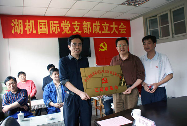 2011年5月13日,在天心區(qū)兩新工委的關(guān)心和指導(dǎo)下,中共湖機(jī)國(guó)際黨支部成立大會(huì)隆重舉行。天心區(qū)兩新工委書記、工商聯(lián)黨組書記蘭飛,兩新工委委員、工商聯(lián)副主席袁再銘等同志出席了會(huì)議。技術(shù)中心主任王新建同志主持了會(huì)議。