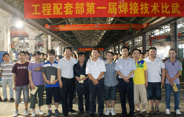 為進一步提高工程配套料斗產(chǎn)品的焊接質(zhì)量,逐步提升一線工人的技術(shù)業(yè)務(wù)素質(zhì),激發(fā)全體員工“比技術(shù)、爭一流”的積極性,2011年8月6日-8月7日,工程配套部、品質(zhì)保障部、綜合管理部聯(lián)合在車間現(xiàn)場舉行了“第一屆焊接技術(shù)比武”。此次技術(shù)比武為全斗焊、側(cè)斗身和后墻板三個工位的高速高效高質(zhì)焊接。經(jīng)過激烈的角逐,在38名參賽員工中產(chǎn)生了8名優(yōu)秀崗位能手。
