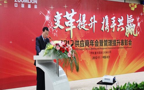 2012年11月21日,在中聯(lián)重科召開的2012年供應(yīng)商年會暨供應(yīng)商管理提升表彰會上,湖機國際榮獲“中聯(lián)重科2012管理提升銀獎”。同時,公司董事長劉年紅作為獲獎供應(yīng)商唯一企業(yè)代表在此次大會上發(fā)表了獲獎感言。