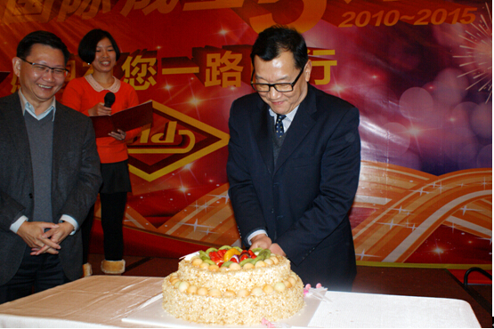 公司董事長(zhǎng)劉年紅先生在公司5周年晚宴現(xiàn)場(chǎng)切生日蛋糕,祝福湖機(jī)國(guó)際這艘 “航船”能夠劈波斬浪,勇往直前,一帆風(fēng)順,再創(chuàng)輝煌!