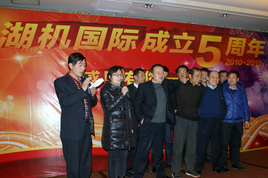 在喜迎羊年到來(lái)之際,我們迎來(lái)了公司掛牌五周年的紀(jì)念日,借公司2014年經(jīng)營(yíng)工作會(huì)、董事會(huì)、股東會(huì)之際, 2月7日晚上18點(diǎn)28分,湖機(jī)國(guó)際技術(shù)管理團(tuán)隊(duì)成員、公司股東及股東代表歡聚一堂,共同慶祝湖機(jī)國(guó)際成立五周年。五周年招待晚宴將以簡(jiǎn)單的歌曲和抽幸運(yùn)獎(jiǎng)等形式展現(xiàn)。出席本次招待晚宴的有一位特殊貴賓原湖南機(jī)床廠廠長(zhǎng)、中聯(lián)重科上海樁工機(jī)械有限公司總經(jīng)理陳鐵堅(jiān)先生。